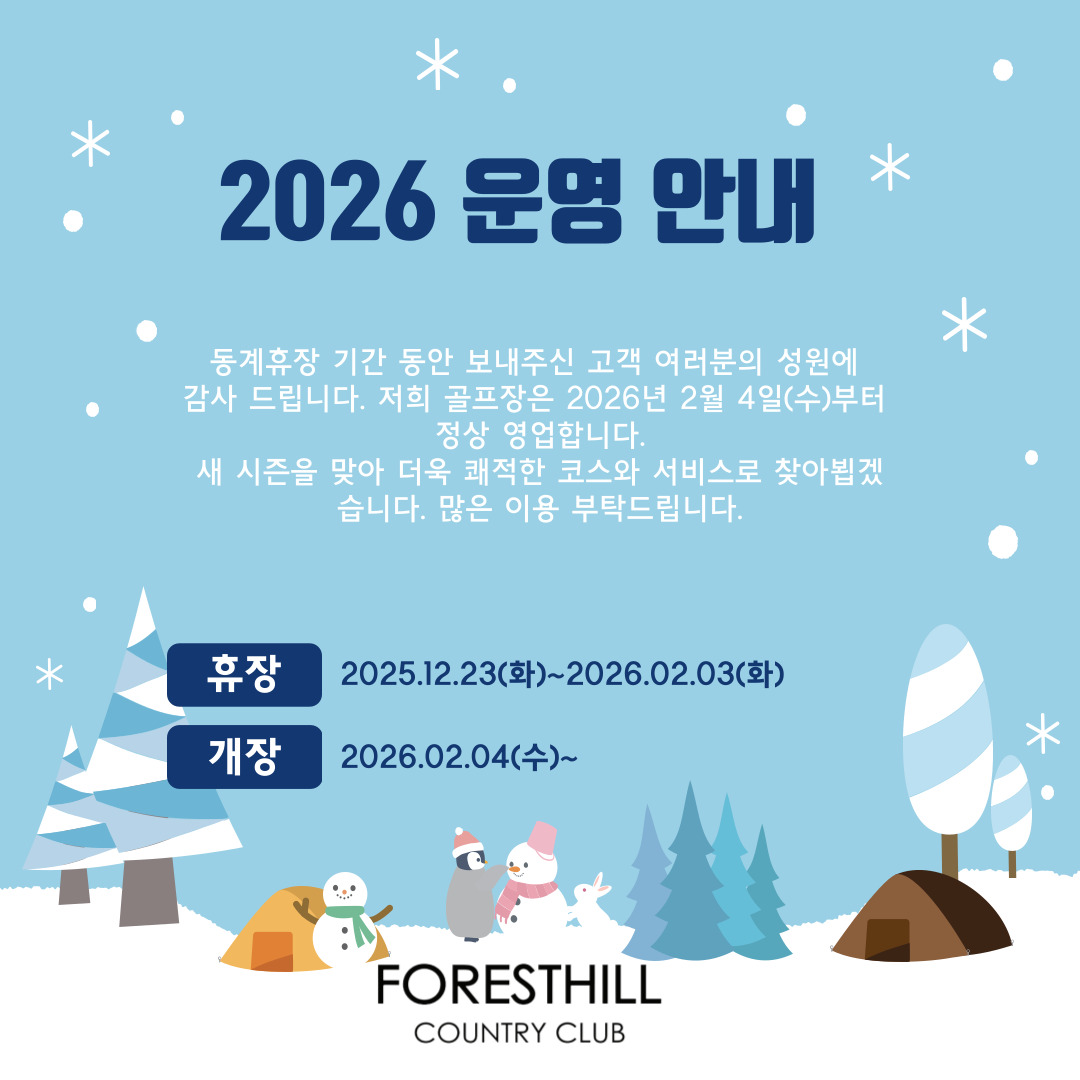 2026년 동계휴장 종료 및 개장 안내