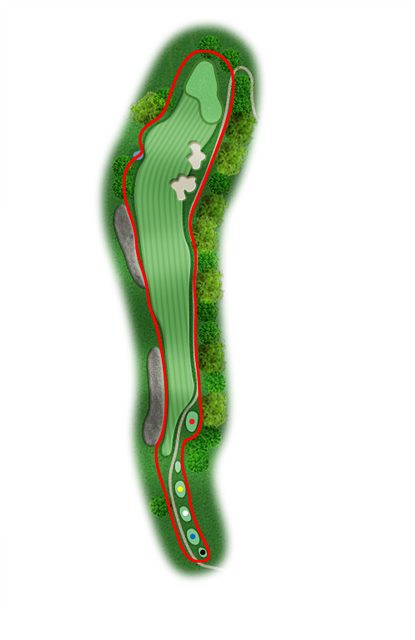 40M 이상의 하향 미들홀로서 거리를 조절하여 페어웨이에 안착하는 것이 중요하다. 특히 어프로치 샷에 따라 버디, 더블보기가 나올 수 있어 세컨샷이 승부가 된다.