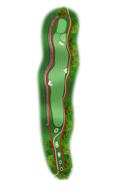 긴 오르막의 S자형 스타트 롱 홀로서 그린에 안착 될때까지 정확한 샷이 요구되며, 특히 써드샷은 그린 앞 크리크를 넘겨야 하기 때문에 난이도가 높다.